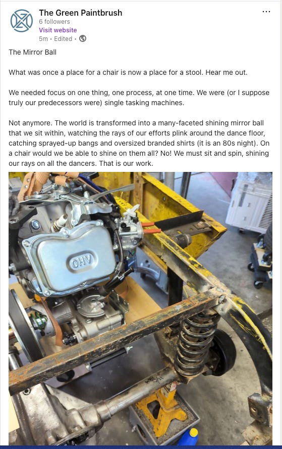 You can’t hire The Green Paintbrush, but you can experience what it was like at the founding and explosive growth of this federation of visionary humans (full of all the life forces you find in your very self every morning when you wake up) in the novel